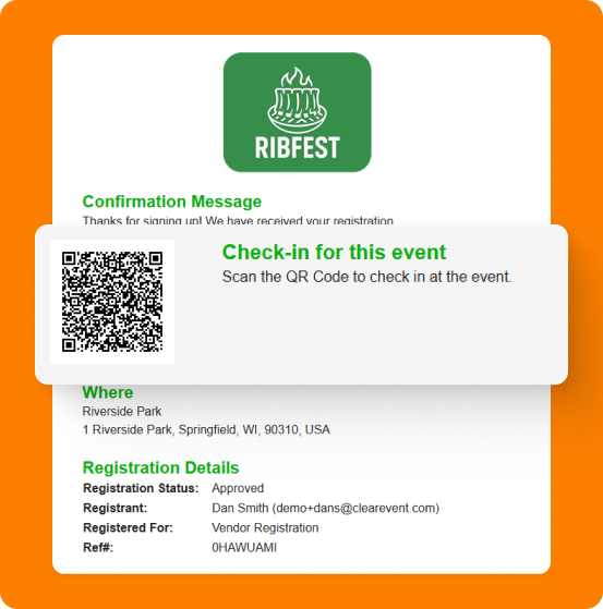 Quickly scan registrants by QR code to check in people at the gate or front desk. It’s fast, simple, and synced directly to your ClearEvent dashboard so you can track attendance live from anywhere.